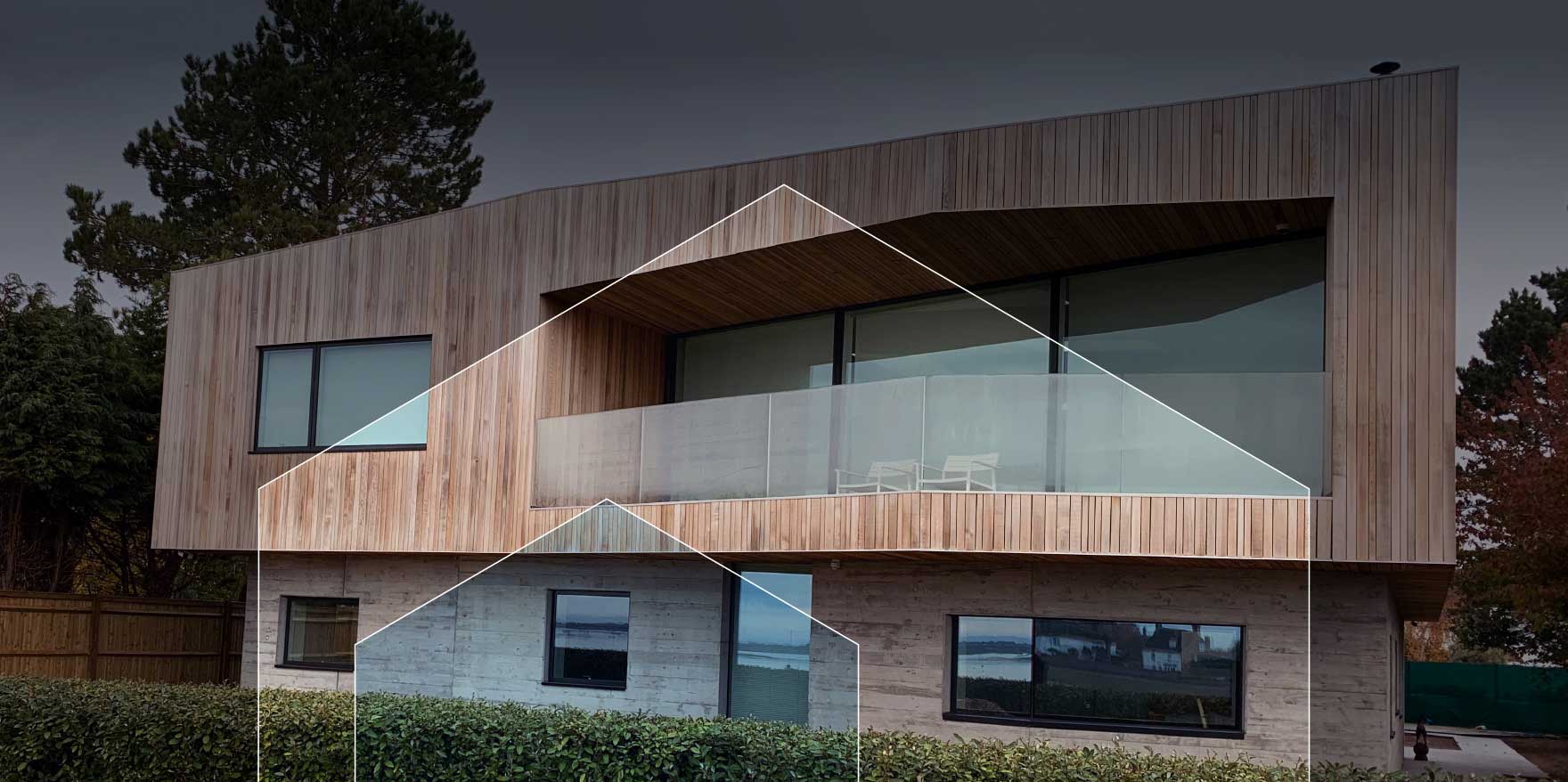 Our latest project is a 4 bedroom “upside down” house, by a harbour in West Sussex, with extensive open plan living areas.