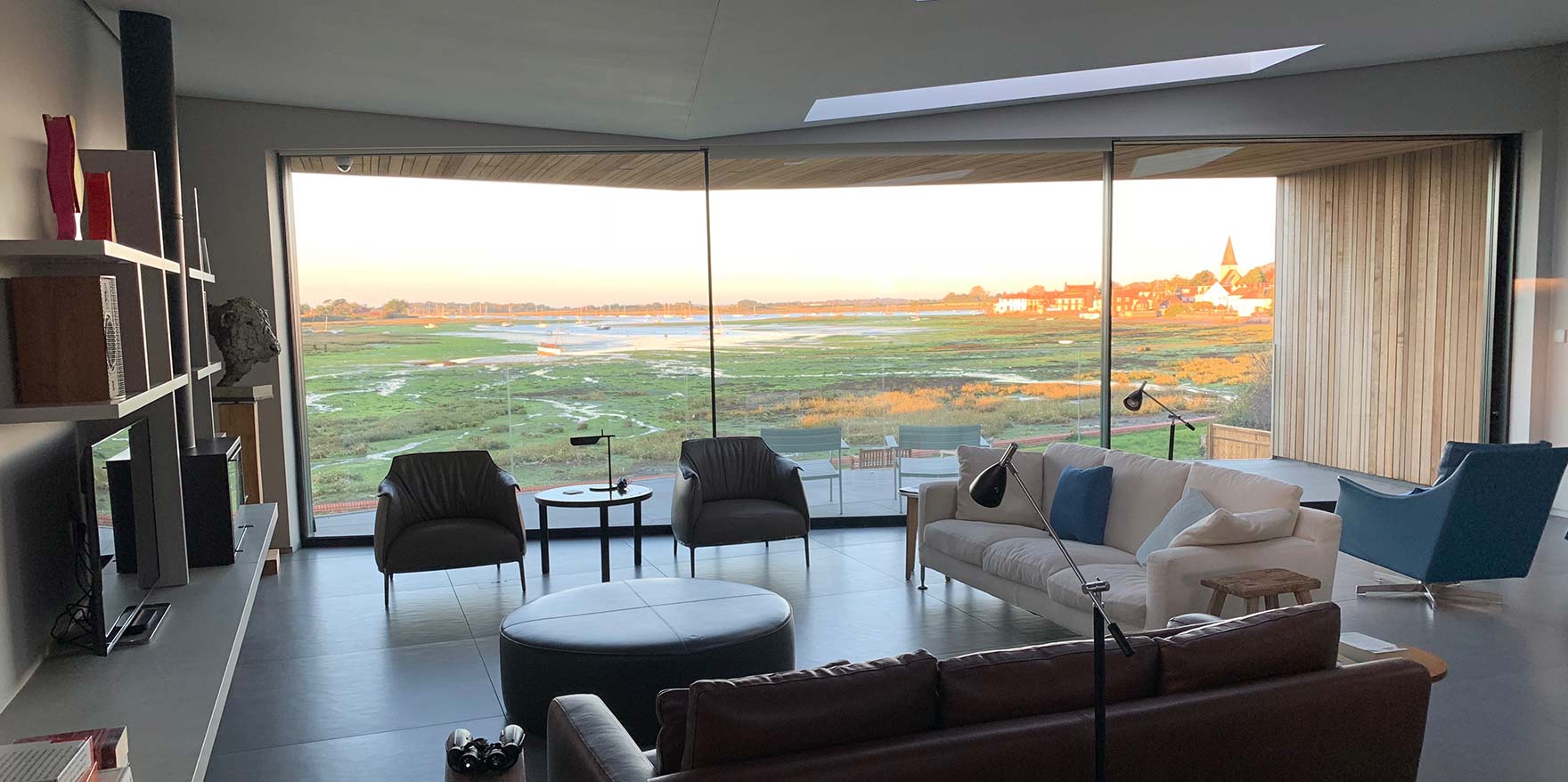 Our latest project is a 4 bedroom “upside down” house, by a harbour in West Sussex, with extensive open plan living areas.